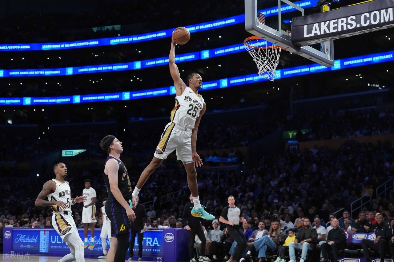 末节决战,拉拉维亚上篮打进,詹姆斯罚球二中一,穆雷突分助攻贝命中3分,艾顿抛投拿2分,穆雷顶着詹姆斯射进3分,回来斯玛特顶着穆雷强投一个,艾顿禁区打进2+1,湖人只落后1分!锡安强打艾顿造犯规,艾顿暴怒挥拳表示不满,裁判给了T,鹈鹕罚球拿2分,麦戈文斯又造里夫斯犯规,罚球拿2分,锡安打进2+1,鹈鹕一波下来将分差扩大至8分,湖人情况不妙!海斯换下艾顿,上场就暴扣一个!里夫斯也命中3分,海斯随后抓帽锡安,老詹快下造犯规可惜二罚全飞,回来老詹将功补过大帽贝的上篮,可惜里夫斯上篮继续铁,锡安上篮干翻海斯进攻犯规!斯玛特回来造犯规罚球拿2分,里夫斯铁了一晚,终于命中关键3分,墨菲连续3分打铁,东契奇抛投拿2分,湖人打出12-0的小高潮,逆转4分!比赛继续,斯玛特抢断助攻老詹上篮,锡安强打内线连拿4分,将分差缩小至2分!东契奇罚球拿2分,斯玛特命中关键3分,湖人领先了7分!最终,湖人110-101击败鹈鹕!