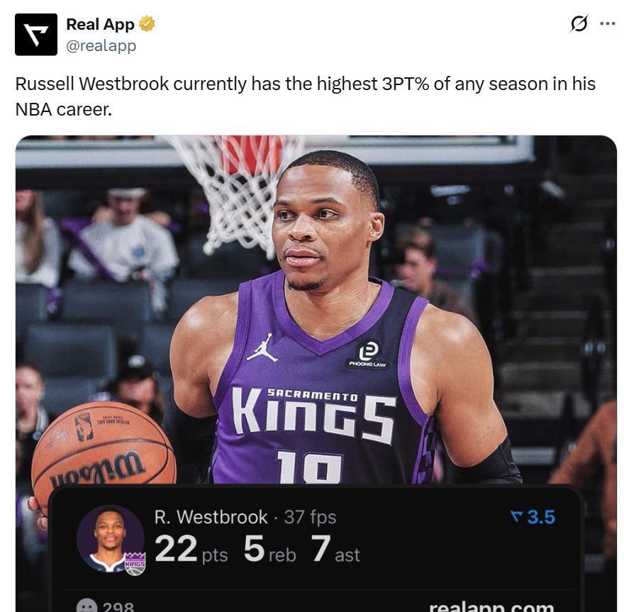 威少能够在逆境中找回自我,重新在NBA中证明自己着实让人敬佩,并且一项数据证明37岁的老威少还在努力进化提升。