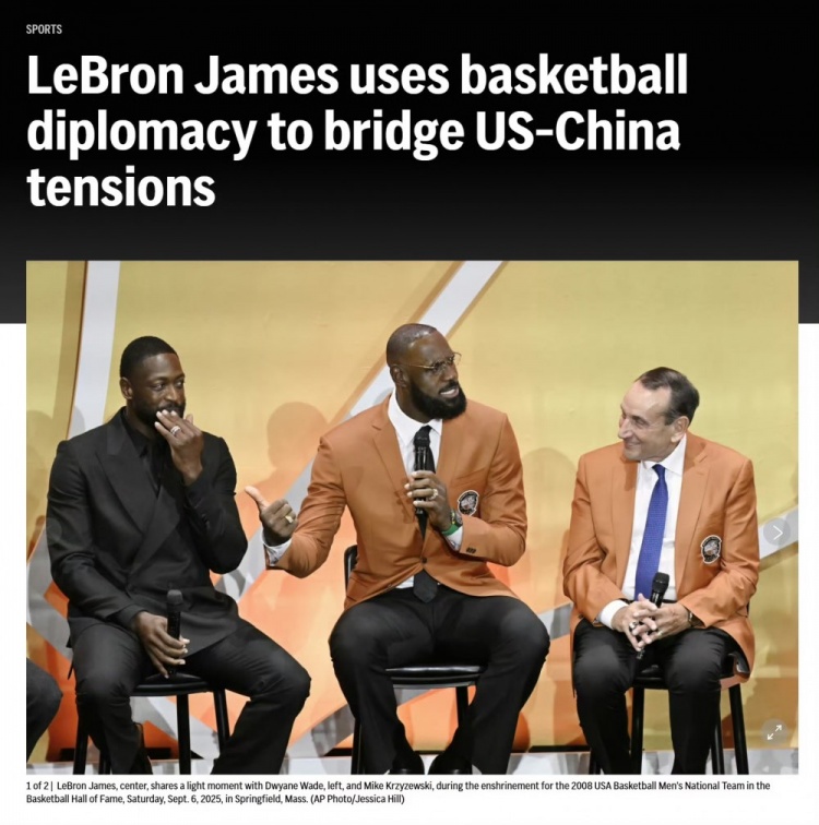 “标题:勒布朗-詹姆斯用篮球外交缓和中美关系